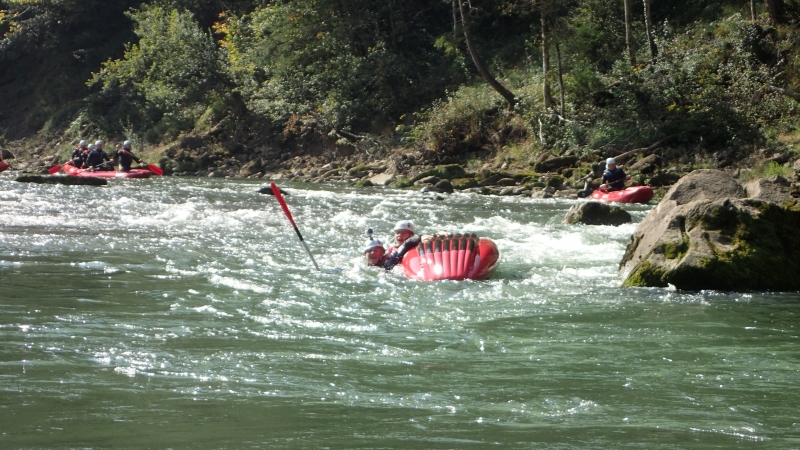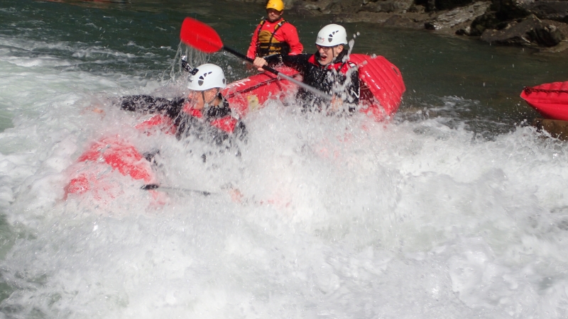Samstagmorgen starteten acht Jungs und zwei Jugendarbeiterinnen gemeinsam in ein spannendes Wochenende. Mit Zug und Bus führte die Reise nach Lingenau im Bregenzerwald. Dort angekommen wurden die Tipis – unsere Unterkunft für die nächste Nacht - bezogen und unser Guide „Stone“ begrüsste uns. Nach der Sicherheitseinweisung ging es in die Umkleidekabinen. Dicke Neoprenanzüge, Schwimmwesten und Helme wurden für das bevorstehende Abenteuer angezogen.