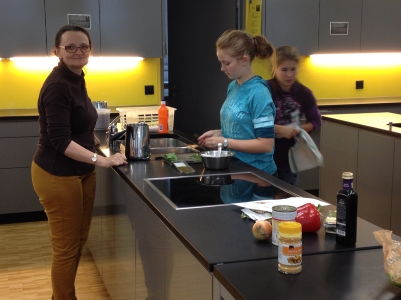 Am Samstagnachmittag kochten wir (9 Jugendliche und 4 Betreuer) mit Feuereifer um die Wette, bei „Cook around the World“. Bevor wir loslegen konnten hieß es jedoch verschiedene Rezepte aus aller Welt auszuwählen und abzustimmen, was es als Vorspeise, Hauptgericht und Nachtisch geben sollte…nicht zu vergessen die Veggies unter uns, die sich ihren eigenen fleischlosen Hauptgang aussuchen duften.
