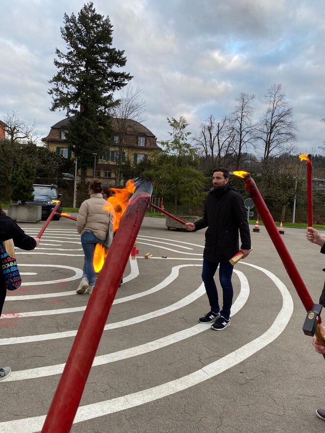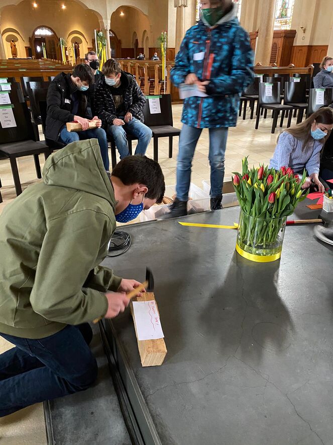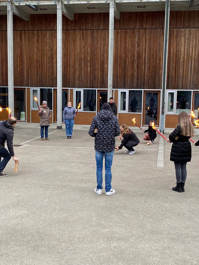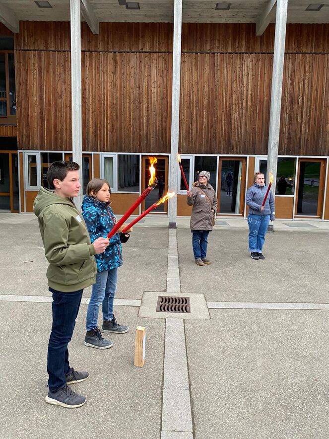 Jugendliche gestalteten für Jugendliche eine vielfältige Osternacht. Nach einer Kennenlern-Spielrunde war stand eine Besinnung auf dem Programm. In einem Bibliodrama konnten die Teilnehmenden das Thema Verrat in den Alltag übersetzen. Schülerinnen aus dem Notkerschulhaus umrahmten die Feier mit musikalischen Beiträgen. NAch einer Fackelwanderung zum Gedicht "Osterspuren" wurde das Osterfeuer entzündet. Spiele und Osterwitze rundeten den Abend ab. Zum Schluss wurden die Gottesdienstbesuchenden der Oternachstfeier in der Neudorfkirche mit einem süssen Ostergruss überrascht und beschenkt.