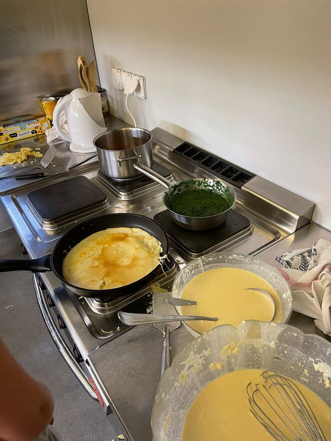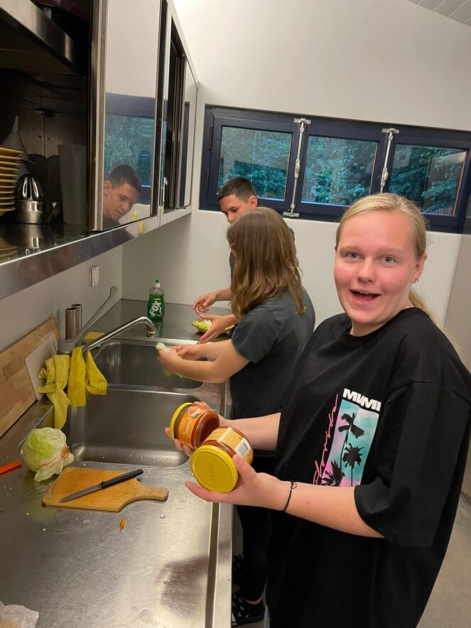 Mithilfe von Marcell Govono, dem Praktikanten der Akj bereiten Ylva, Laurel und Paula ein feines Abendessen her. Während die einen vertieft sind in ein spannendes Spiel namens “Werwolf“, werden die Anderen im Freien von Alena frisiert.