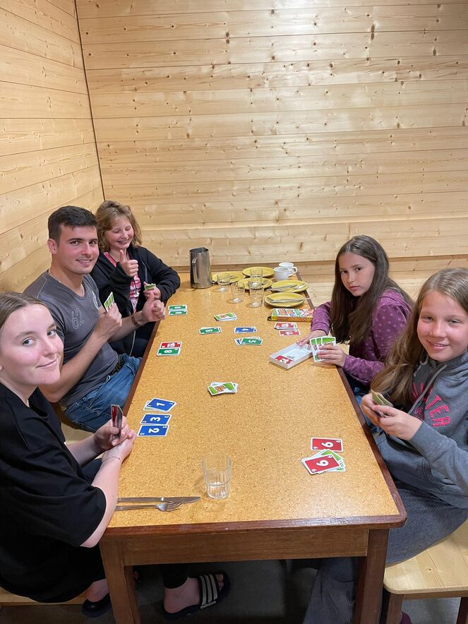 Der frühe Vogel fängt den Wurm! Bereits morgens um 08:30 Uhr trifft die ganze Truppe von selbst beim Frühstück ein. Nachdem alle gefrühstückt haben und bei Kräften sind, wird die Verpflegung vorbereitet für den Mittag und Nachmittag; ein paar feine Früchte, Farmer, Brötchen und los geht’s. Den Nachmittag verbrachten wir zwischen Volleyballfeldern und Sprungturm. Sonne gut, alles gut das dachten sich eine Gruppe Jugendliche und Kinder und blieben mit Ivan im Lago, während die anderen in Ascona nach den perfekten Spotlights oder nach einem passenden Souvenir suchten. Eigenständigkeit wird Gross geschrieben. Während die eine Gruppe mit Marcell wieder zurück zum Campo ging, gingen die anderen mit Claudia unser Abendessen einkaufen. Kein TV, sondern Gesellschaftsspiele, Runde für Runde. Die anderen unterhalten sich in den Zimmern und die Einkaufstruppe bereitet das Abendessen zu.