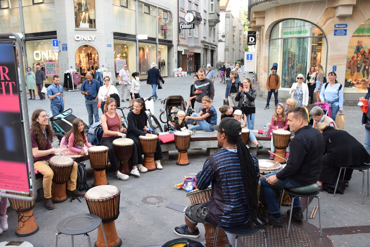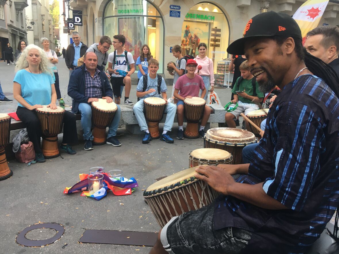 Der Anlass hat seine Wirkung nicht verfehlt: viele Menschen jeglicher Herkunft und jeden Alters liessen sich berühren, sei es beim Mittrommeln oder einfach beim Zuschauen.