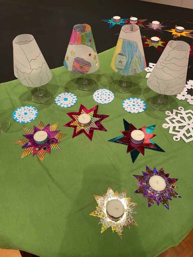 Papier verwandelte sich in ein besonderes Tischlicht. Mit Zvieri und bei schöner Musik