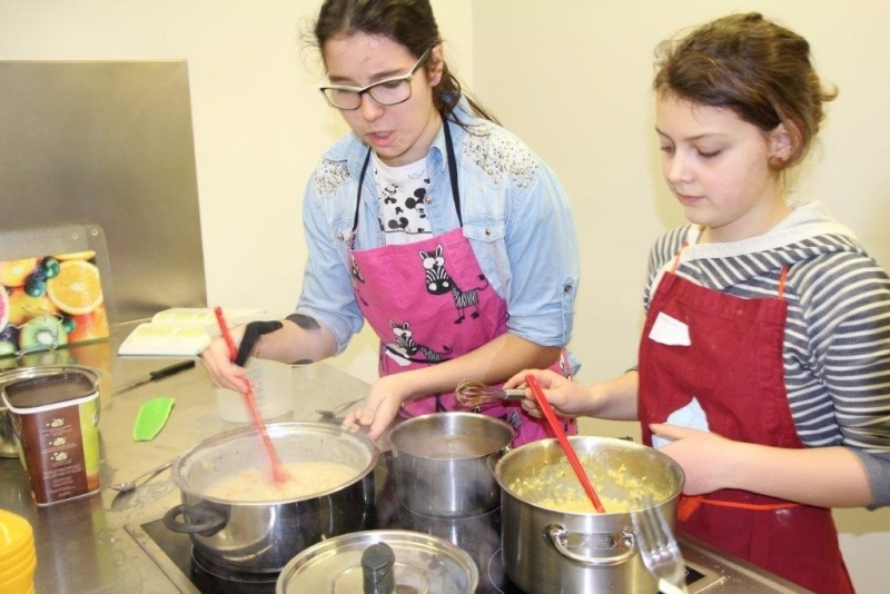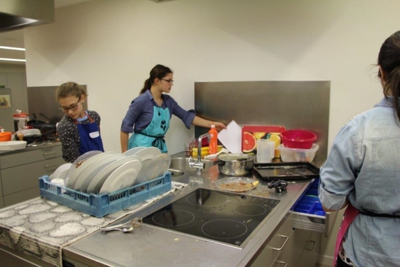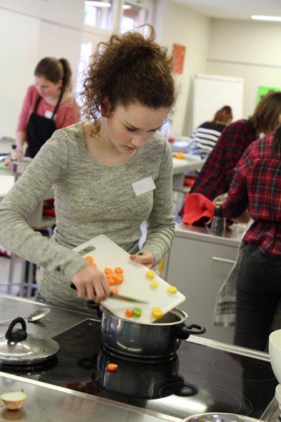 Der Auftrag war, mit einer Auswahl an zur Verfügung gestellten regional und saisonaler Lebensmittel ein Dreigangmenu zu kreieren. Während die einen noch am planen waren, begannen andere schon zu kochen. Die zur Verfügung gestellte Zeit reichte um in Ruhe den Auftrag zu erfüllen. Das emsige Treiben der Jungköchinnen in der Schulküche der Meitleflade erinnerte an einen Ameisenhaufen, weil jede wusste, was zu tun war und anpackte. Die meisten Handgriffe sassen schon sehr gut, als Joker stand ein Profikoch für Anfragen zur Verfügung und das Yesprit Team stand ebenfalls bereit.