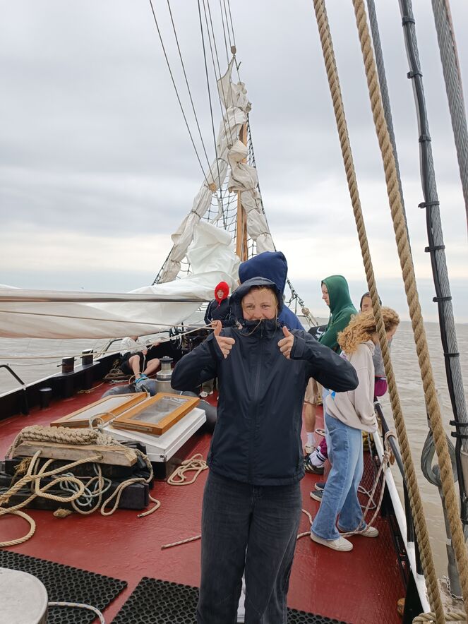 Unser Abenteuer begann mit einer spannenden Busfahrt nach Harlingen, wo wir die Segel hissen und uns auf die Erkundung der nahegelegenen Inseln begaben. Auf unseren Schiffen schlugen wir unser Lager auf: Hier genossen wir unser Essen und nächtigten unter dem sternenübersäten Himmel, während wir sanft auf den Wellen schaukelten.