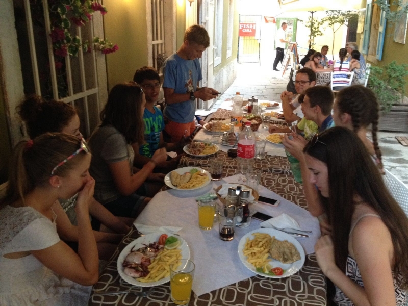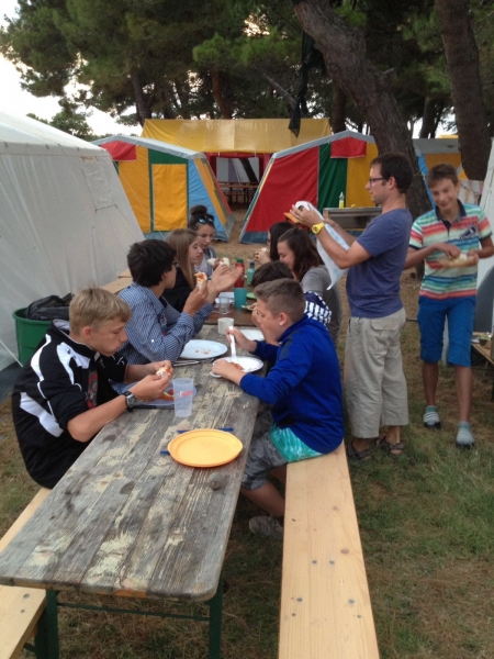 Wer eine Reise tut, der kann was erleben. Die ersten Tage waren noch ruhig und "chillig". Die Gruppe genosse die Sonnenstrahlen beim Sonnen und Meerbad und erfreute sich am Schnorcheln. Bei den Tagen danach änderte das Wetter in Schweizermodus und es regnete, Gewitterte, Stürmte und brachte das Programm mächtig durcheinander. Trotzdem kamen die St. Galler Jugendlichen in den Genuss von einer interessanten Stadtführung in Pula, einem Kanu Ausflug, einem Volleyballturnier mit anderen Jugendlichen des Jugendcamps in Medulin, einem stürmisch abenteuerlichen Fisch-Picnic-Bootsausflug mit Klippenspringen, einer Mountain-Bike-Schnorchel-Tour und vorallem in den Genuss von Begegnungen mit einer tollen, anpassungsfähigen, unkomplizierten, Reisegruppe, die für Spass und Experimente zu begeistern waren.